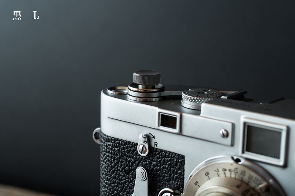 無垢の真鍮を旋盤加工で削り出してつくったレリーズボタンLの黒染め仕上げです。