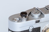 無垢の真鍮を旋盤加工で削り出してつくったレリーズボタンLのブラックペイント仕上げです。艶のある光沢感を持つブラック塗装を施しています。通常のブラックとは異なり、塗膜が強いので使用による経年変化はかなり緩やかになります。